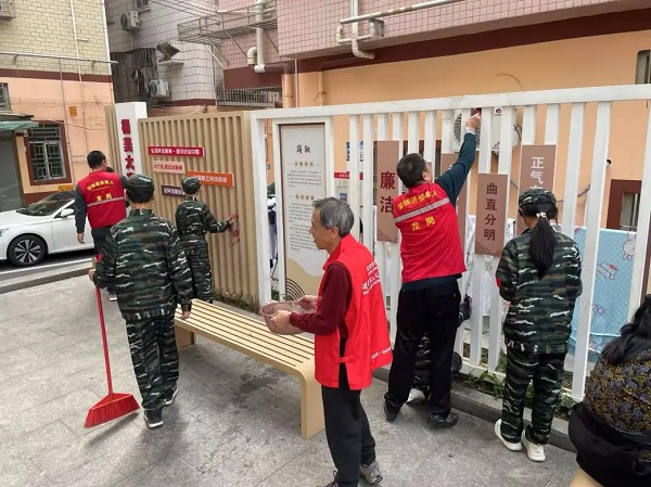 2月16日,龙岗区坂田街道退役军人红星志愿服务队带领社区学生参加清洁日志愿服务。